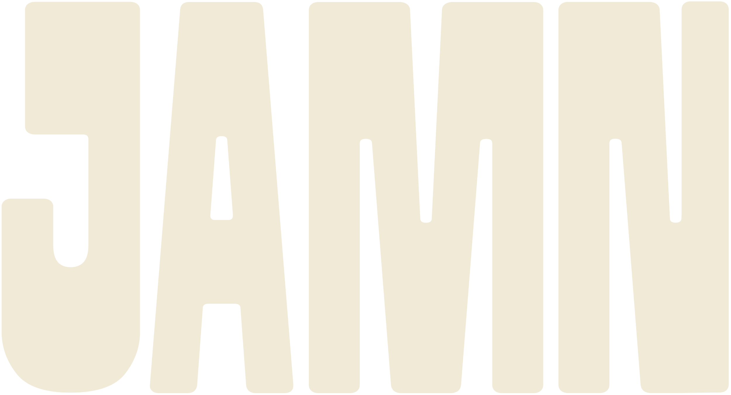 Bold capital letters spelling out the word "JAM" in a beige color on a black background.